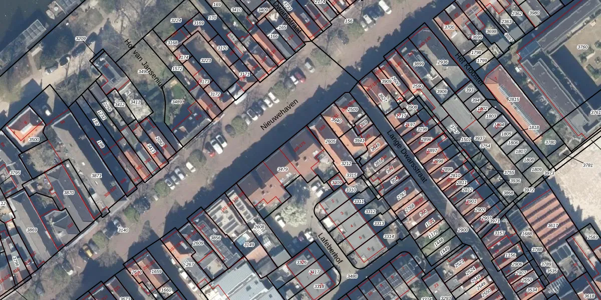 Het perceel waarop Nieuwehaven 165-b staat heeft een oppervlakte van 455 m². Dit is een groot perceel. De perceeloppervlakte wordt geregistreerd door het Kadaster. Gedetailleerde informatie over de maten van dit perceel kunt u vinden in het rapport Kadastrale kaart met maatvoering van Nieuwehaven 165-b.