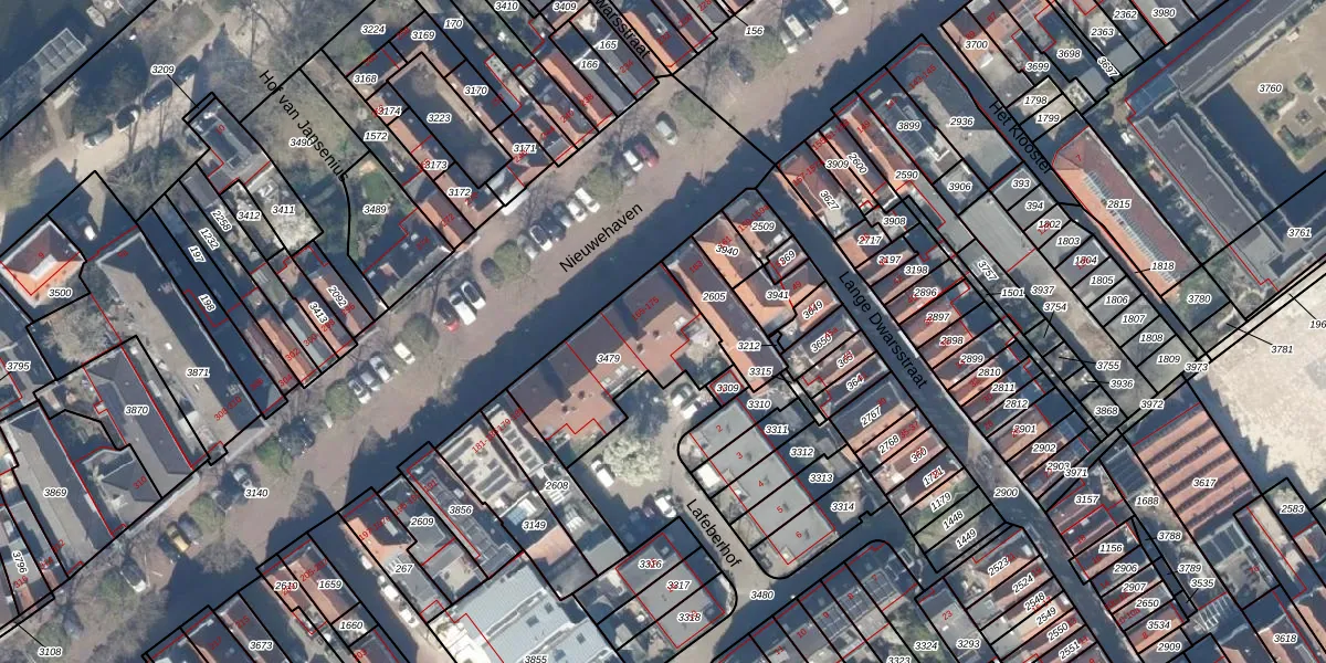 Het perceel waarop Nieuwehaven 169 staat heeft een oppervlakte van 455 m². Dit is een groot perceel. De perceeloppervlakte wordt geregistreerd door het Kadaster. Gedetailleerde informatie over de maten van dit perceel kunt u vinden in het rapport Kadastrale kaart met maatvoering van Nieuwehaven 169.
