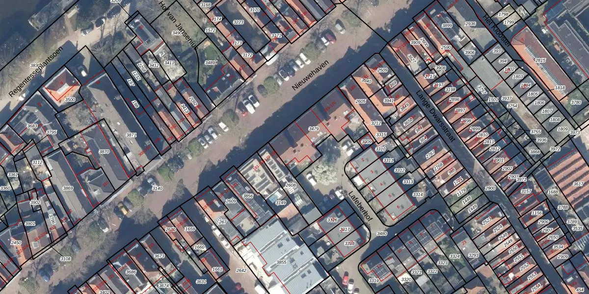 Het perceel waarop Nieuwehaven 173 staat heeft een oppervlakte van 455 m². Dit is een groot perceel. De perceeloppervlakte wordt geregistreerd door het Kadaster. Gedetailleerde informatie over de maten van dit perceel kunt u vinden in het rapport Kadastrale kaart met maatvoering van Nieuwehaven 173.