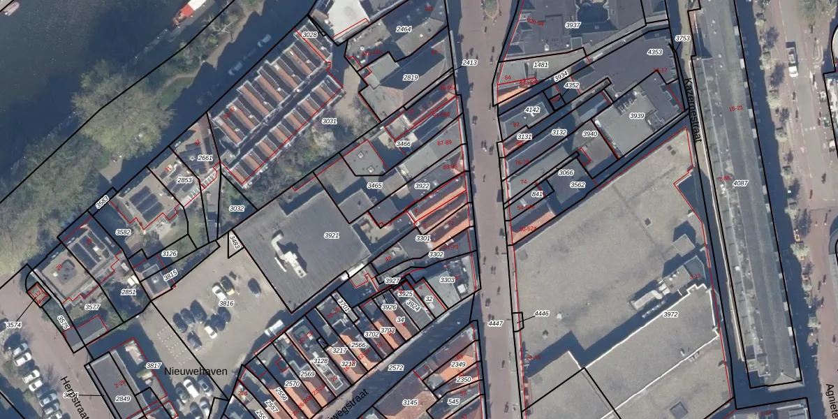 Het perceel waarop Nieuwehaven 8 staat heeft een oppervlakte van 761 m². Dit is een groot perceel. De perceeloppervlakte wordt geregistreerd door het Kadaster. Gedetailleerde informatie over de maten van dit perceel kunt u vinden in het rapport Kadastrale kaart met maatvoering van Nieuwehaven 8.