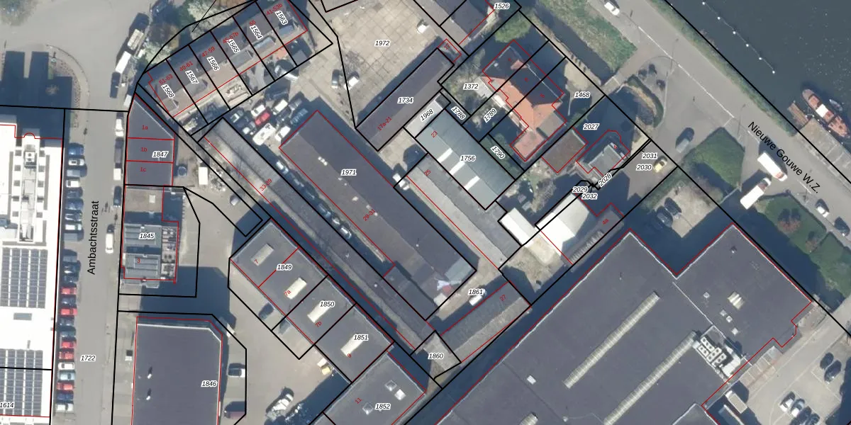 Nijverheidsstraat 23-a is gelegen op kadastraal perceel GDA01G1861. Deze kadastrale aanduiding is uniek en wordt gebruikt door het Kadaster om eigendomsrechten en andere zakelijke rechten vast te leggen. Het perceel maakt onderdeel uit van de kadastrale gemeente Gouda.