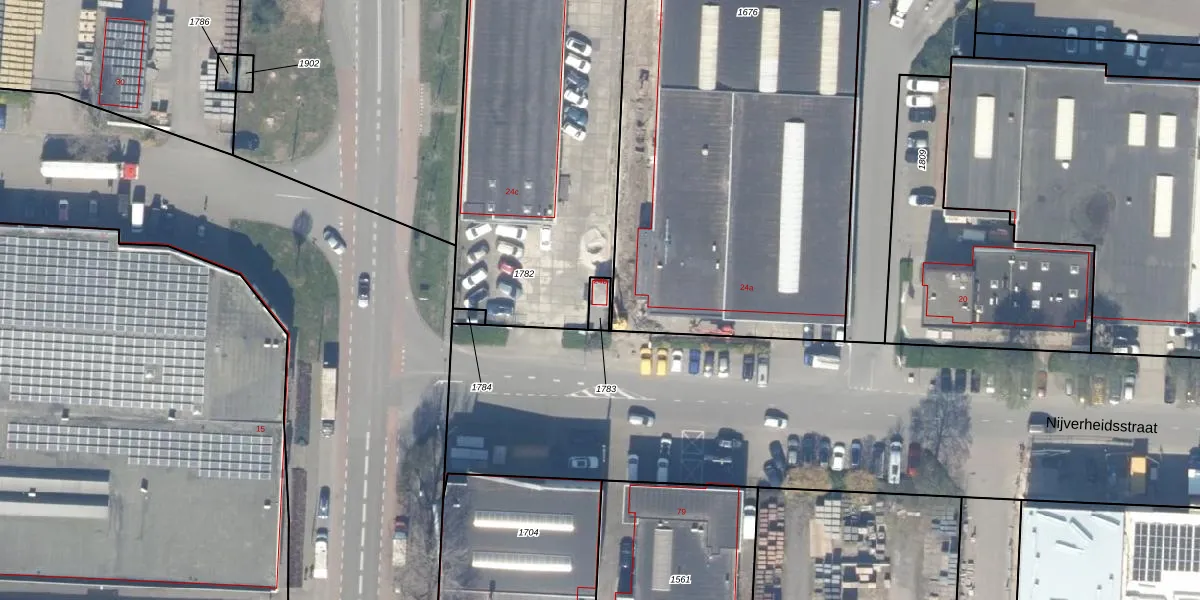 Nijverheidsstraat 24-b is gelegen op kadastraal perceel GDA01G1783. Deze kadastrale aanduiding is uniek en wordt gebruikt door het Kadaster om eigendomsrechten en andere zakelijke rechten vast te leggen. Het perceel maakt onderdeel uit van de kadastrale gemeente Gouda.