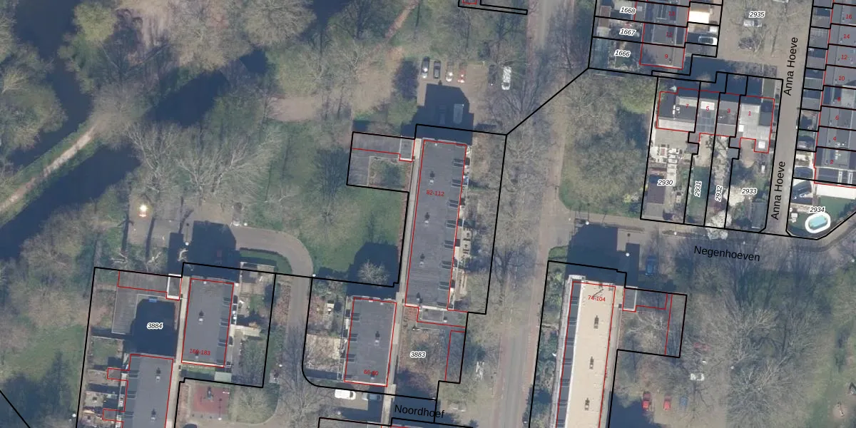 Het perceel waarop Noordhoef 100 staat heeft een oppervlakte van 1912 m². Dit is een zeer groot perceel. De perceeloppervlakte wordt geregistreerd door het Kadaster. Gedetailleerde informatie over de maten van dit perceel kunt u vinden in het rapport Kadastrale kaart met maatvoering van Noordhoef 100.