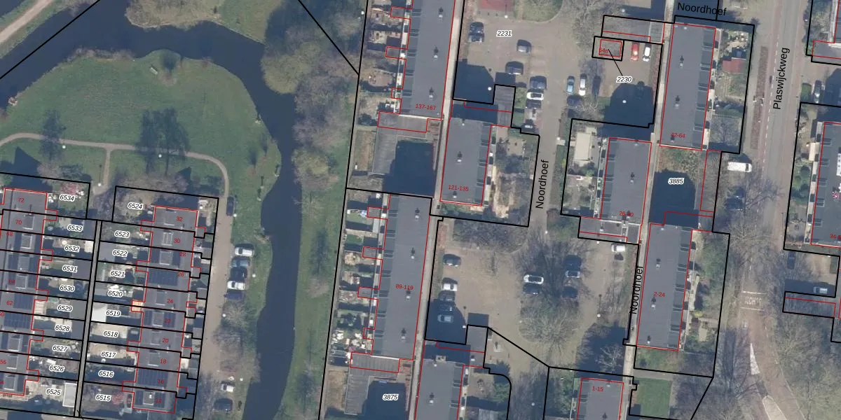 Het perceel waarop Noordhoef 119 staat heeft een oppervlakte van 4176 m². Dit is een zeer groot perceel. De perceeloppervlakte wordt geregistreerd door het Kadaster. Gedetailleerde informatie over de maten van dit perceel kunt u vinden in het rapport Kadastrale kaart met maatvoering van Noordhoef 119.