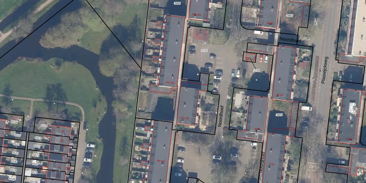 Noordhoef 133 is gelegen op kadastraal perceel GDA01M3884. Deze kadastrale aanduiding is uniek en wordt gebruikt door het Kadaster om eigendomsrechten en andere zakelijke rechten vast te leggen. Het perceel maakt onderdeel uit van de kadastrale gemeente Gouda.