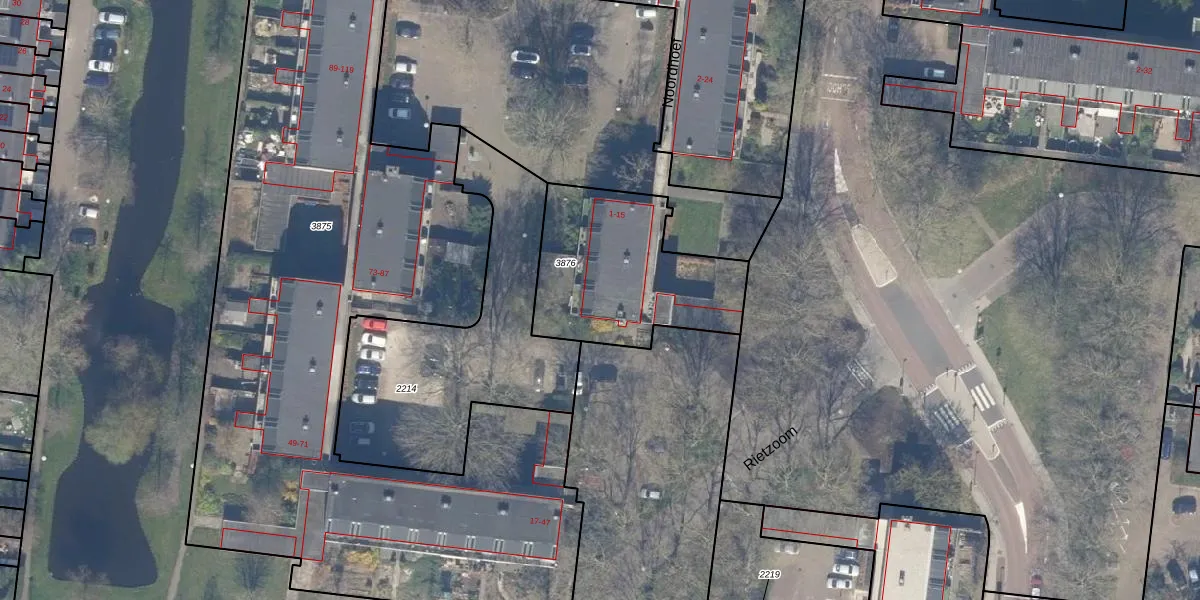 Noordhoef 15 is gelegen op kadastraal perceel GDA01M3876. Deze kadastrale aanduiding is uniek en wordt gebruikt door het Kadaster om eigendomsrechten en andere zakelijke rechten vast te leggen. Het perceel maakt onderdeel uit van de kadastrale gemeente Gouda.