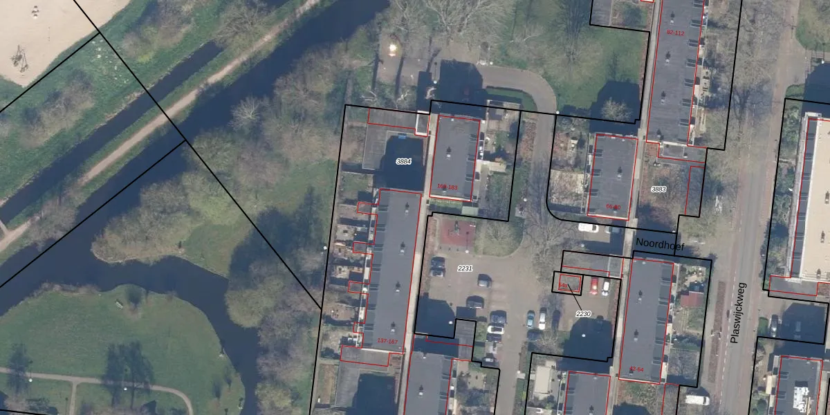 Noordhoef 165 is gelegen op kadastraal perceel GDA01M3884. Deze kadastrale aanduiding is uniek en wordt gebruikt door het Kadaster om eigendomsrechten en andere zakelijke rechten vast te leggen. Het perceel maakt onderdeel uit van de kadastrale gemeente Gouda.