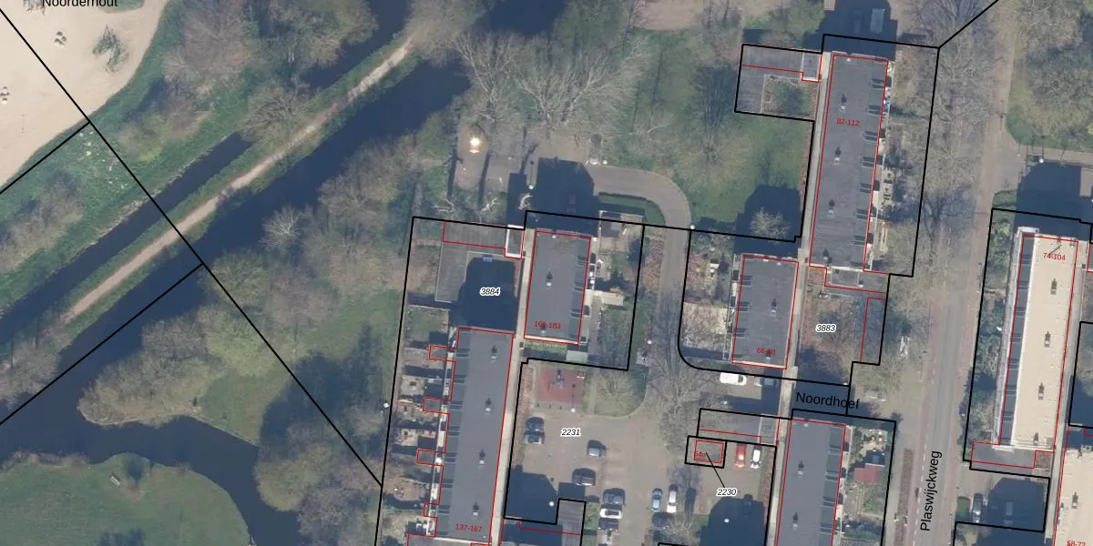 Het perceel waarop Noordhoef 179 staat heeft een oppervlakte van 2874 m². Dit is een zeer groot perceel. De perceeloppervlakte wordt geregistreerd door het Kadaster. Gedetailleerde informatie over de maten van dit perceel kunt u vinden in het rapport Kadastrale kaart met maatvoering van Noordhoef 179.