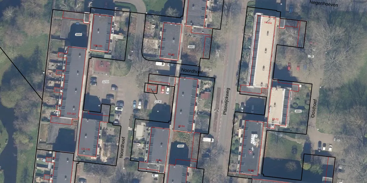 Het perceel waarop Noordhoef 60 staat heeft een oppervlakte van 2288 m². Dit is een zeer groot perceel. De perceeloppervlakte wordt geregistreerd door het Kadaster. Gedetailleerde informatie over de maten van dit perceel kunt u vinden in het rapport Kadastrale kaart met maatvoering van Noordhoef 60.