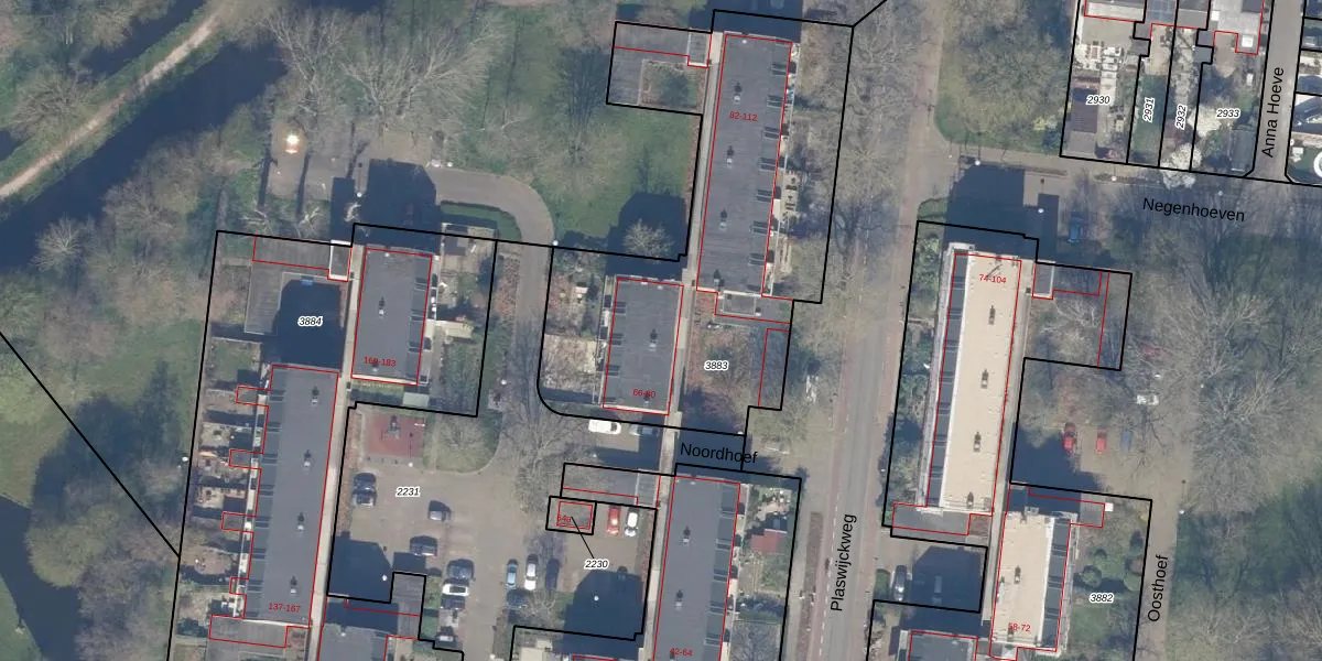 Het perceel waarop Noordhoef 76 staat heeft een oppervlakte van 1912 m². Dit is een zeer groot perceel. De perceeloppervlakte wordt geregistreerd door het Kadaster. Gedetailleerde informatie over de maten van dit perceel kunt u vinden in het rapport Kadastrale kaart met maatvoering van Noordhoef 76.