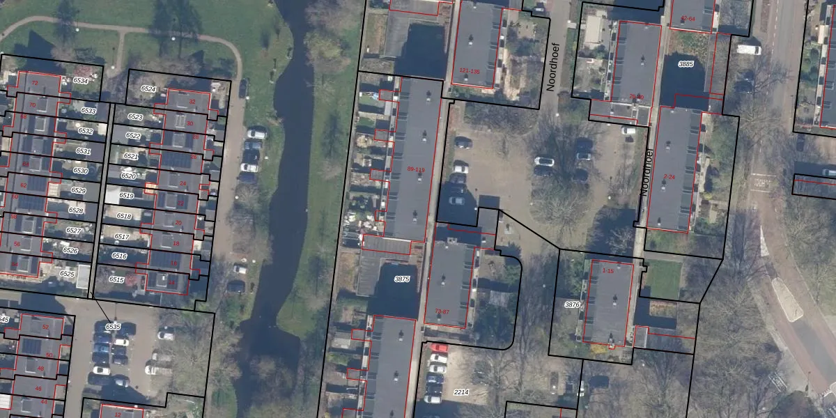 Het perceel waarop Noordhoef 95 staat heeft een oppervlakte van 4176 m². Dit is een zeer groot perceel. De perceeloppervlakte wordt geregistreerd door het Kadaster. Gedetailleerde informatie over de maten van dit perceel kunt u vinden in het rapport Kadastrale kaart met maatvoering van Noordhoef 95.