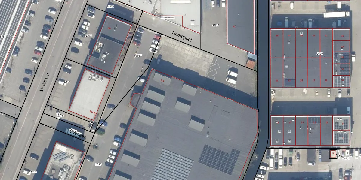 Het perceel waarop Noordpool 4 staat heeft een oppervlakte van 1,3 ha. Dit is een zeer groot perceel. De perceeloppervlakte wordt geregistreerd door het Kadaster. Gedetailleerde informatie over de maten van dit perceel kunt u vinden in het rapport Kadastrale kaart met maatvoering van Noordpool 4.