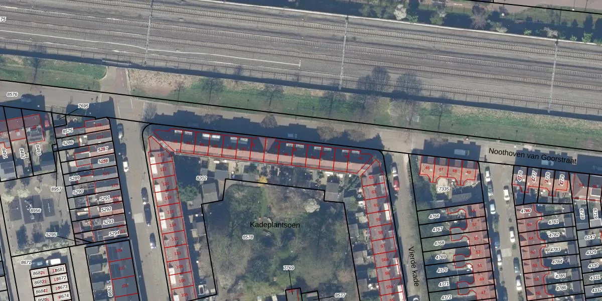 Noothoven van Goorstraat 41 is gelegen op kadastraal perceel GDA01A8202. Deze kadastrale aanduiding is uniek en wordt gebruikt door het Kadaster om eigendomsrechten en andere zakelijke rechten vast te leggen. Het perceel maakt onderdeel uit van de kadastrale gemeente Gouda.