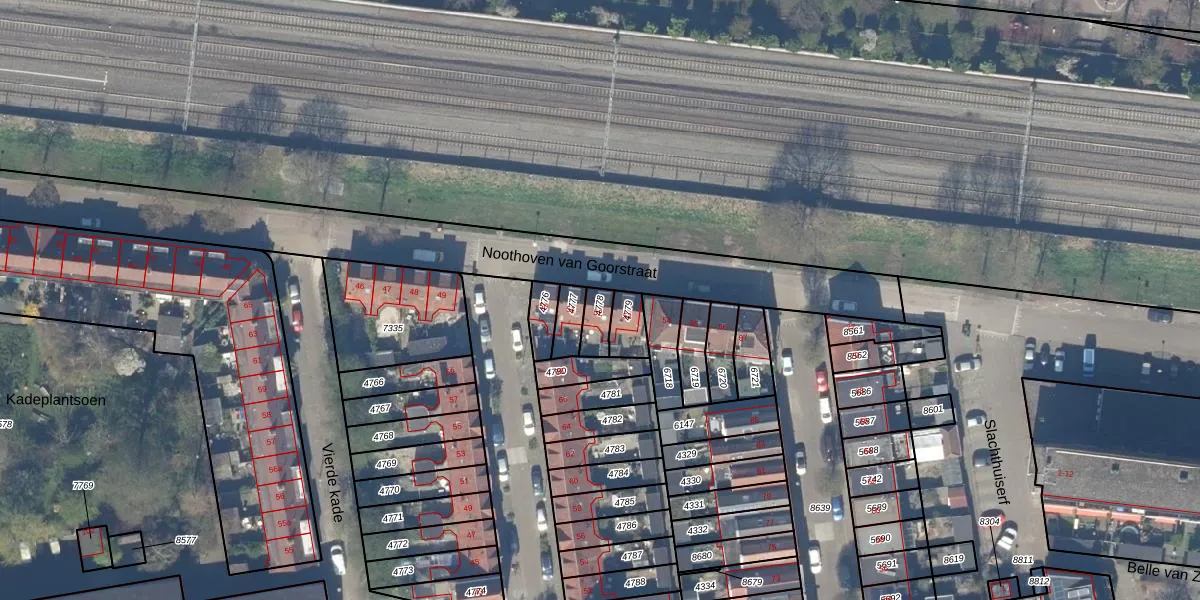 Noothoven van Goorstraat 52 is gelegen op kadastraal perceel GDA01A4778. Deze kadastrale aanduiding is uniek en wordt gebruikt door het Kadaster om eigendomsrechten en andere zakelijke rechten vast te leggen. Het perceel maakt onderdeel uit van de kadastrale gemeente Gouda.