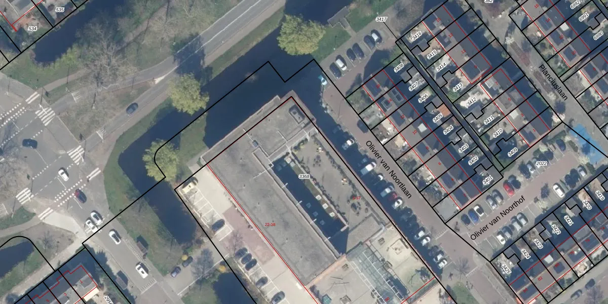 Het perceel waarop Olivier van Noortlaan 19 staat heeft een oppervlakte van 4520 m². Dit is een zeer groot perceel. De perceeloppervlakte wordt geregistreerd door het Kadaster. Gedetailleerde informatie over de maten van dit perceel kunt u vinden in het rapport Kadastrale kaart met maatvoering van Olivier van Noortlaan 19.