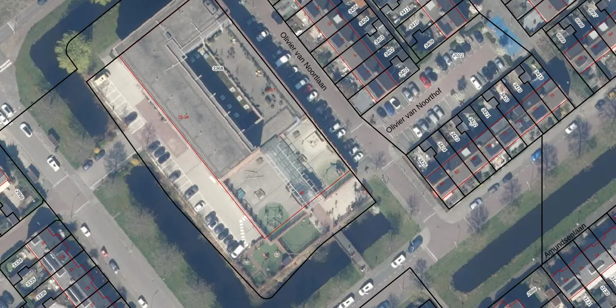 Het perceel waarop Olivier van Noortlaan 5 staat heeft een oppervlakte van 4520 m². Dit is een zeer groot perceel. De perceeloppervlakte wordt geregistreerd door het Kadaster. Gedetailleerde informatie over de maten van dit perceel kunt u vinden in het rapport Kadastrale kaart met maatvoering van Olivier van Noortlaan 5.