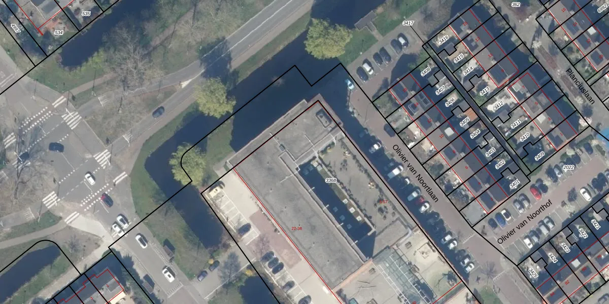 Het perceel waarop Olivier van Noortlaan 57 staat heeft een oppervlakte van 4520 m². Dit is een zeer groot perceel. De perceeloppervlakte wordt geregistreerd door het Kadaster. Gedetailleerde informatie over de maten van dit perceel kunt u vinden in het rapport Kadastrale kaart met maatvoering van Olivier van Noortlaan 57.