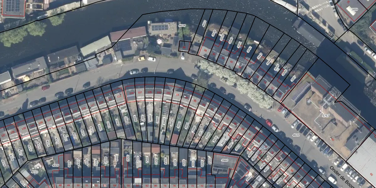 Onder de Boompjes 97 is gelegen op kadastraal perceel GDA01E3982. Deze kadastrale aanduiding is uniek en wordt gebruikt door het Kadaster om eigendomsrechten en andere zakelijke rechten vast te leggen. Het perceel maakt onderdeel uit van de kadastrale gemeente Gouda.