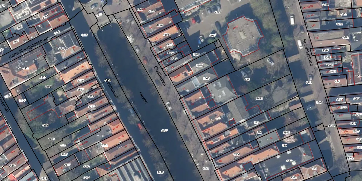 Het perceel waarop Oosthaven 51 staat heeft een oppervlakte van 248 m². Dit is een middelgroot perceel. De perceeloppervlakte wordt geregistreerd door het Kadaster. Gedetailleerde informatie over de maten van dit perceel kunt u vinden in het rapport Kadastrale kaart met maatvoering van Oosthaven 51.