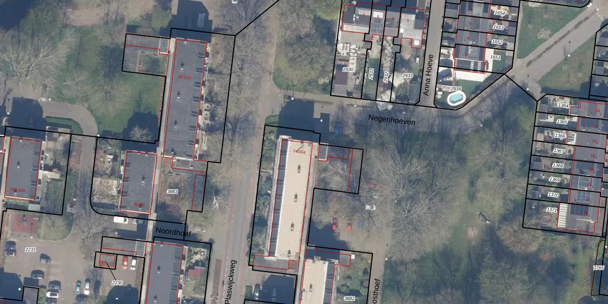 Het perceel waarop Oosthoef 104 staat heeft een oppervlakte van 3796 m². Dit is een zeer groot perceel. De perceeloppervlakte wordt geregistreerd door het Kadaster. Gedetailleerde informatie over de maten van dit perceel kunt u vinden in het rapport Kadastrale kaart met maatvoering van Oosthoef 104.