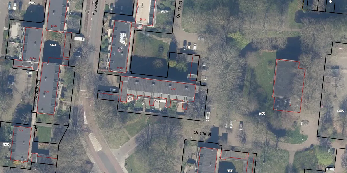 Het perceel waarop Oosthoef 12 staat heeft een oppervlakte van 3796 m². Dit is een zeer groot perceel. De perceeloppervlakte wordt geregistreerd door het Kadaster. Gedetailleerde informatie over de maten van dit perceel kunt u vinden in het rapport Kadastrale kaart met maatvoering van Oosthoef 12.