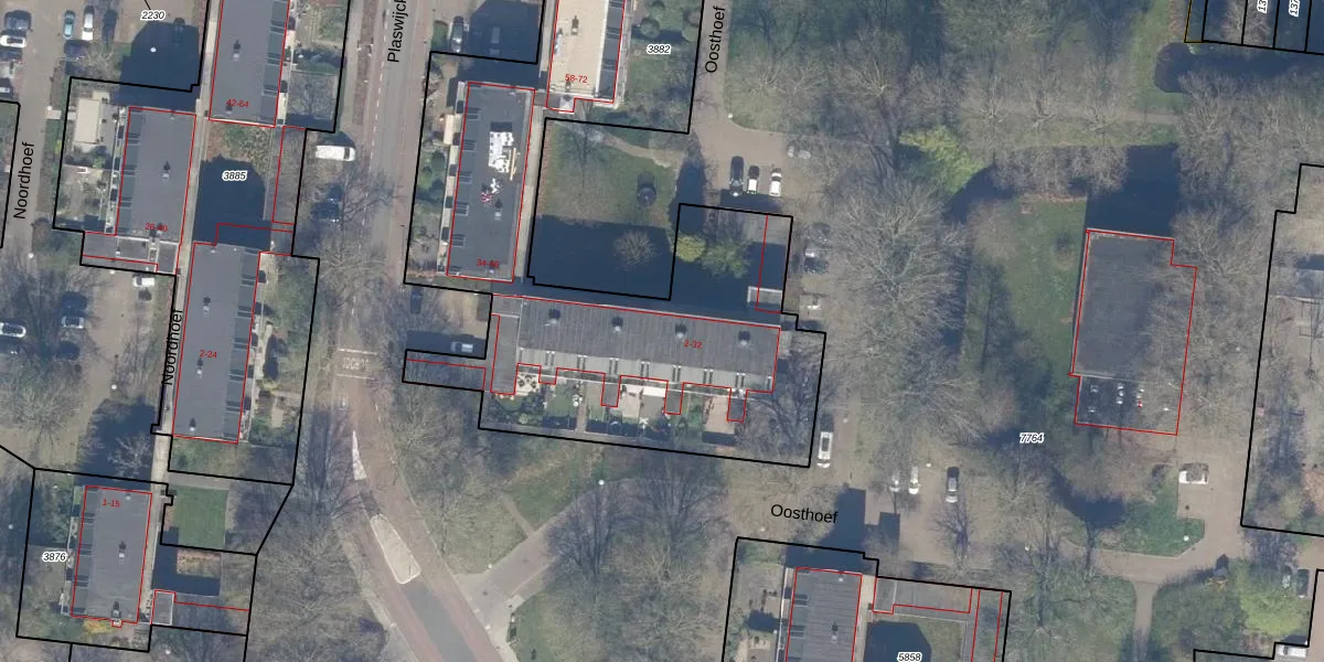 Het perceel waarop Oosthoef 16 staat heeft een oppervlakte van 3796 m². Dit is een zeer groot perceel. De perceeloppervlakte wordt geregistreerd door het Kadaster. Gedetailleerde informatie over de maten van dit perceel kunt u vinden in het rapport Kadastrale kaart met maatvoering van Oosthoef 16.