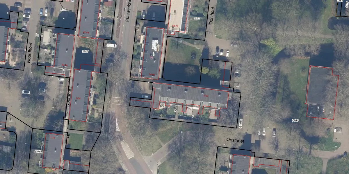 Het perceel waarop Oosthoef 26 staat heeft een oppervlakte van 3796 m². Dit is een zeer groot perceel. De perceeloppervlakte wordt geregistreerd door het Kadaster. Gedetailleerde informatie over de maten van dit perceel kunt u vinden in het rapport Kadastrale kaart met maatvoering van Oosthoef 26.