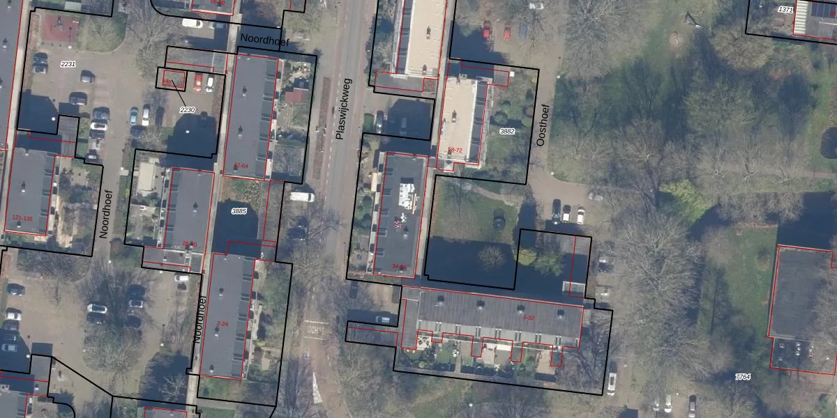 Het perceel waarop Oosthoef 46 staat heeft een oppervlakte van 3796 m². Dit is een zeer groot perceel. De perceeloppervlakte wordt geregistreerd door het Kadaster. Gedetailleerde informatie over de maten van dit perceel kunt u vinden in het rapport Kadastrale kaart met maatvoering van Oosthoef 46.