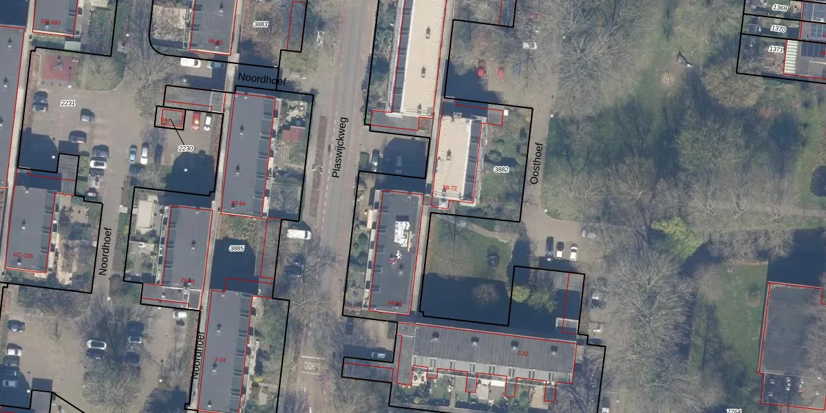 Het adres is gelegen op perceel 3882 in de sectie M en de kadastrale gemeente Gouda. De kadastrale aanduiding is aldus GDA01-M-3882. Het perceel is met 3796 m² relatief groot. Het gemiddelde ligt in de kadastrale gemeente Gouda op 678,84 m². Het grootste perceel in de kadastrale gemeente is 24,2 ha. Het kleinste perceel heeft een oppervlakte van 0 m². Op het perceel liggen in totaal 52 adressen. De huidige grenzen van het perceel zijn digitaal in de Basisregistratie Kadaster (BRK) geregistreerd op 11-12-2006.
