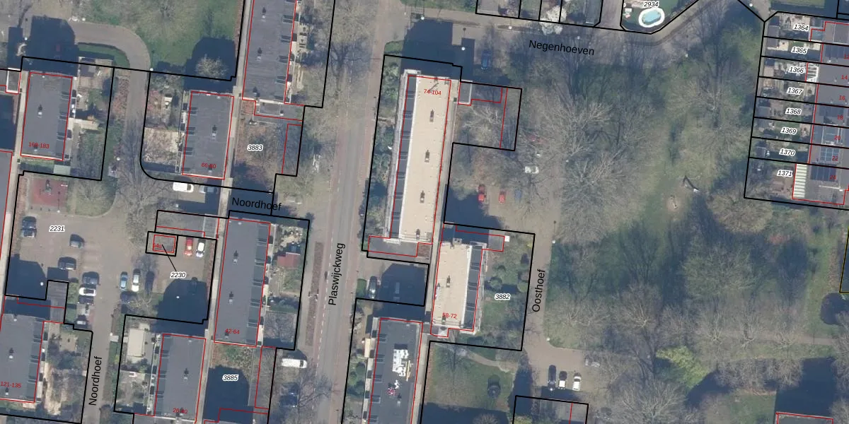 Het perceel waarop Oosthoef 80 staat heeft een oppervlakte van 3796 m². Dit is een zeer groot perceel. De perceeloppervlakte wordt geregistreerd door het Kadaster. Gedetailleerde informatie over de maten van dit perceel kunt u vinden in het rapport Kadastrale kaart met maatvoering van Oosthoef 80.