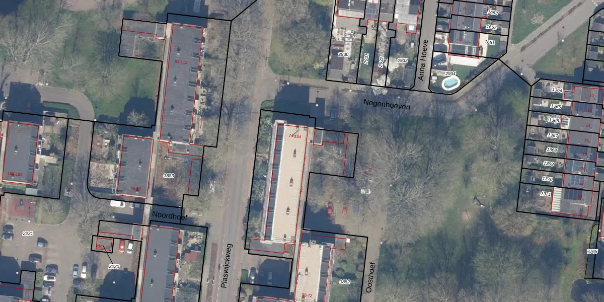 Het perceel waarop Oosthoef 98 staat heeft een oppervlakte van 3796 m². Dit is een zeer groot perceel. De perceeloppervlakte wordt geregistreerd door het Kadaster. Gedetailleerde informatie over de maten van dit perceel kunt u vinden in het rapport Kadastrale kaart met maatvoering van Oosthoef 98.