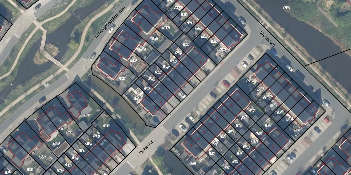Gebruik de zoekbalk of klik op een perceel voor informatie over de adressen binnen dit perceel.