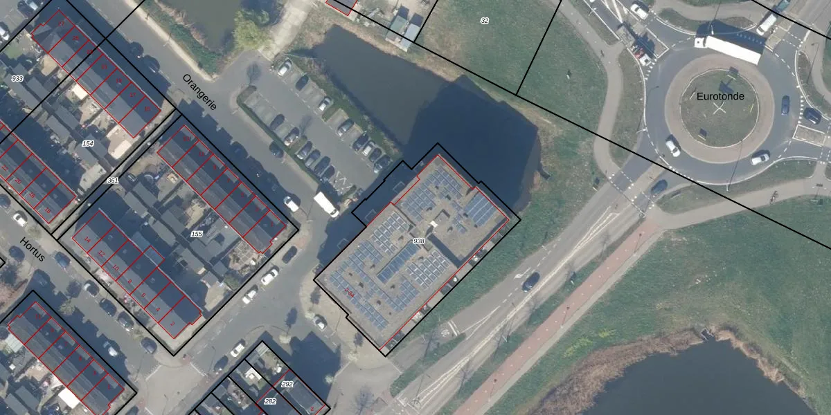 Het perceel waarop Orangerie 48 staat heeft een oppervlakte van 1250 m². Dit is een zeer groot perceel. De perceeloppervlakte wordt geregistreerd door het Kadaster. Gedetailleerde informatie over de maten van dit perceel kunt u vinden in het rapport Kadastrale kaart met maatvoering van Orangerie 48.