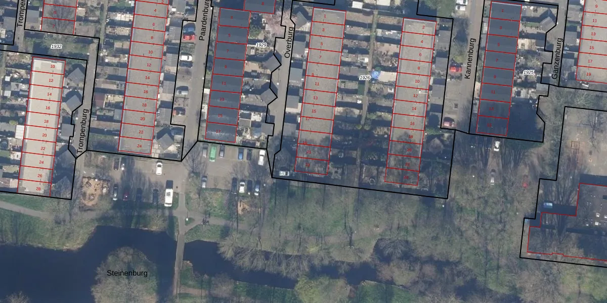 Het perceel waarop Overburg 21 staat heeft een oppervlakte van 3871 m². Dit is een zeer groot perceel. De perceeloppervlakte wordt geregistreerd door het Kadaster. Gedetailleerde informatie over de maten van dit perceel kunt u vinden in het rapport Kadastrale kaart met maatvoering van Overburg 21.