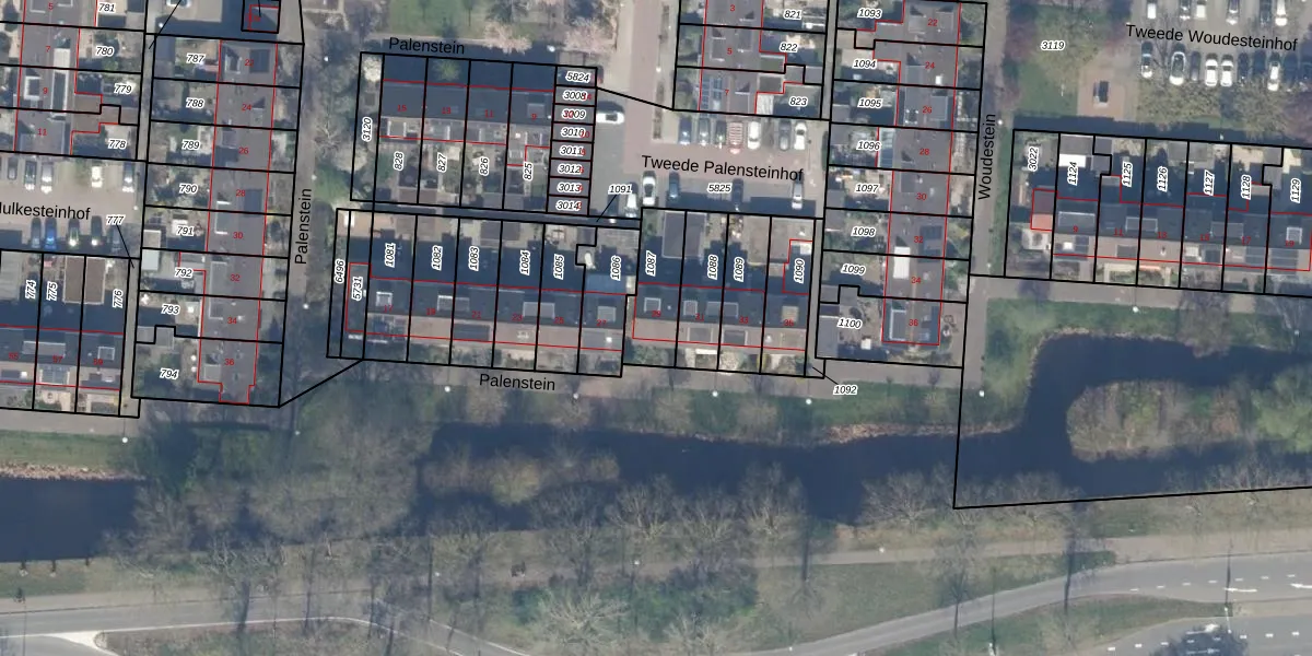 Het perceel waarop Palenstein 29 staat heeft een oppervlakte van 177 m². Dit is een middelgroot perceel. De perceeloppervlakte wordt geregistreerd door het Kadaster. Gedetailleerde informatie over de maten van dit perceel kunt u vinden in het rapport Kadastrale kaart met maatvoering van Palenstein 29.