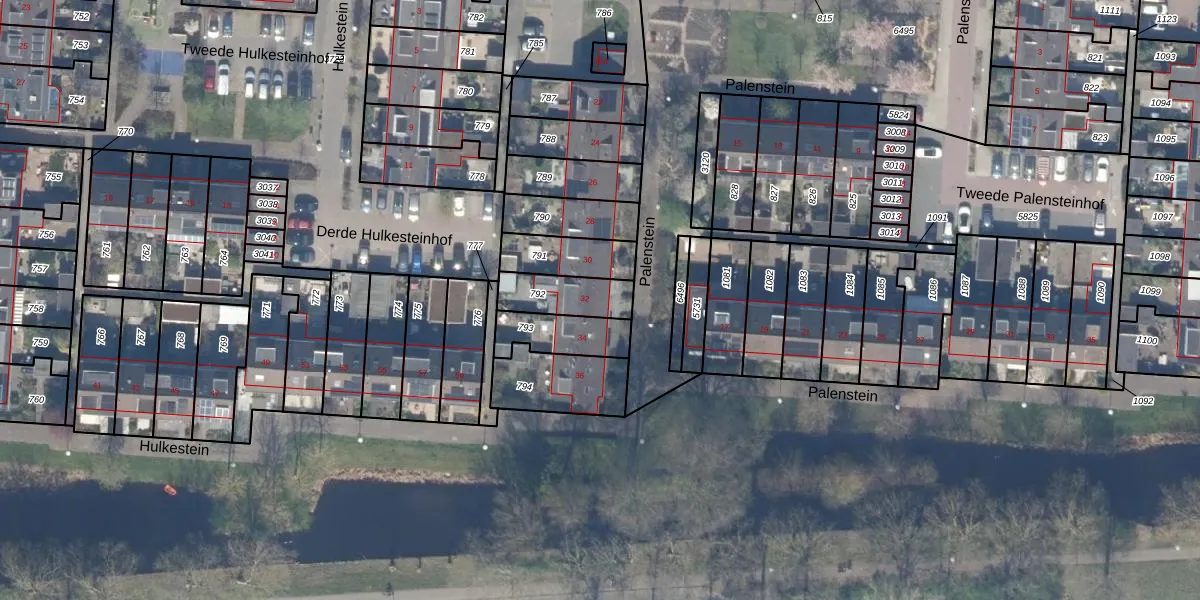 Het perceel waarop Palenstein 32 staat heeft een oppervlakte van 147 m². Dit is een middelgroot perceel. De perceeloppervlakte wordt geregistreerd door het Kadaster. Gedetailleerde informatie over de maten van dit perceel kunt u vinden in het rapport Kadastrale kaart met maatvoering van Palenstein 32.