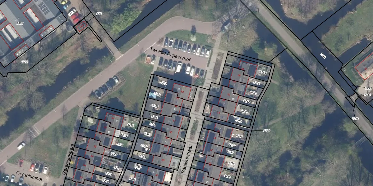 Papaverstraat 63 is gelegen op kadastraal perceel GDA01M5762. Deze kadastrale aanduiding is uniek en wordt gebruikt door het Kadaster om eigendomsrechten en andere zakelijke rechten vast te leggen. Het perceel maakt onderdeel uit van de kadastrale gemeente Gouda.