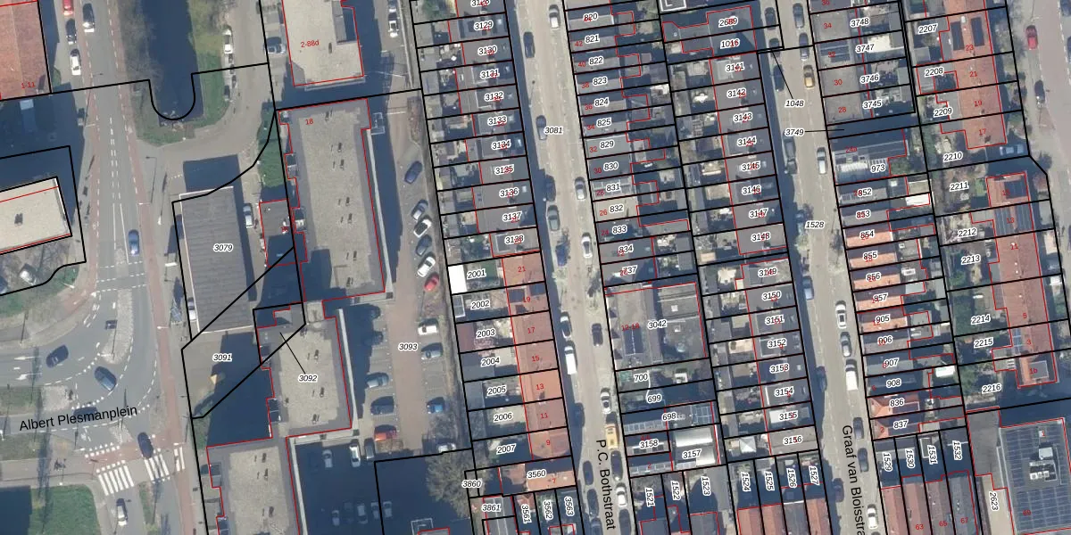 Gebruik de zoekbalk of klik op een perceel voor informatie over de adressen binnen dit perceel.