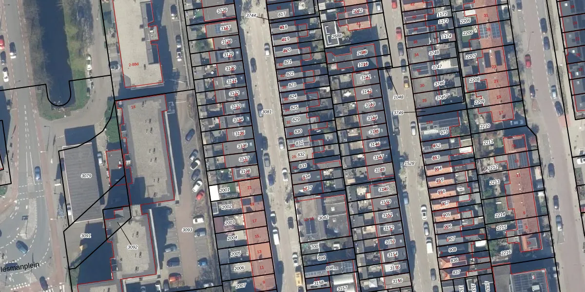 Gebruik de zoekbalk of klik op een perceel voor informatie over de adressen binnen dit perceel.