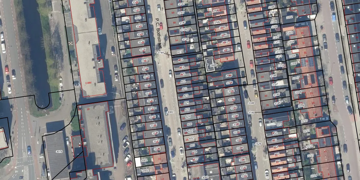 P.C. Bothstraat 40 is gelegen op kadastraal perceel GDA01I822. Deze kadastrale aanduiding is uniek en wordt gebruikt door het Kadaster om eigendomsrechten en andere zakelijke rechten vast te leggen. Het perceel maakt onderdeel uit van de kadastrale gemeente Gouda.