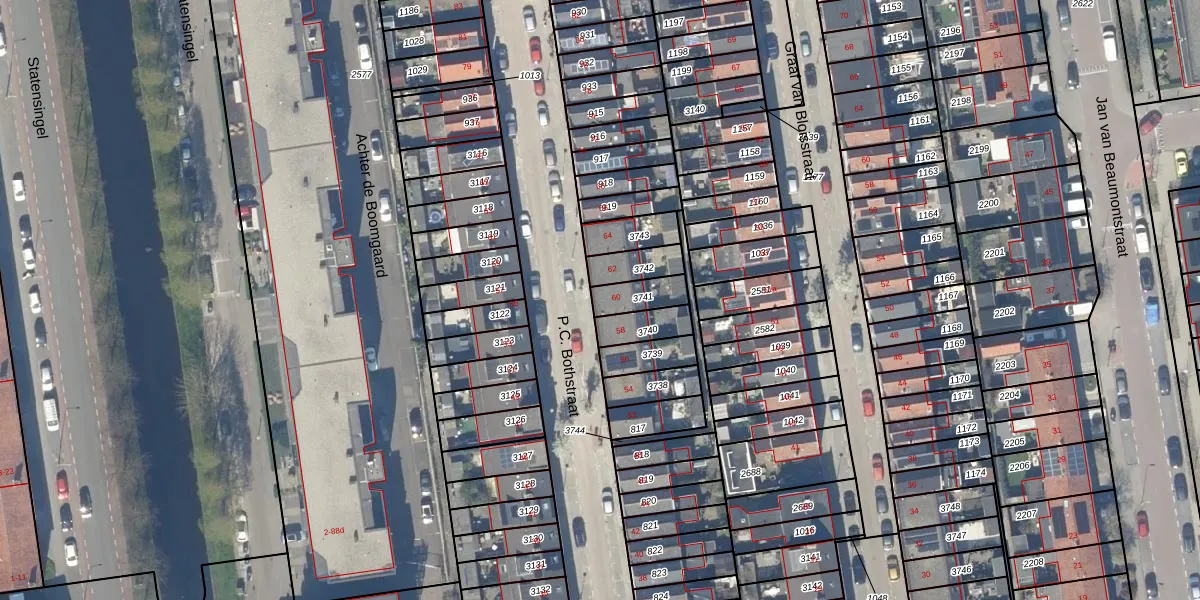 Het perceel waarop P.C. Bothstraat 60 staat heeft een oppervlakte van 82 m². Dit is een klein perceel. De perceeloppervlakte wordt geregistreerd door het Kadaster. Gedetailleerde informatie over de maten van dit perceel kunt u vinden in het rapport Kadastrale kaart met maatvoering van P.C. Bothstraat 60.