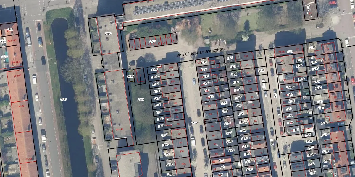 Gebruik de zoekbalk of klik op een perceel voor informatie over de adressen binnen dit perceel.