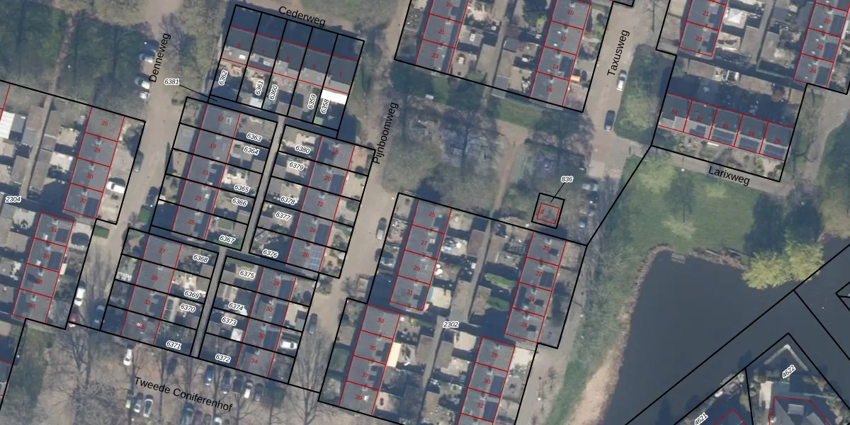 Het perceel waarop Pijnboomweg 25 staat heeft een oppervlakte van 2396 m². Dit is een zeer groot perceel. De perceeloppervlakte wordt geregistreerd door het Kadaster. Gedetailleerde informatie over de maten van dit perceel kunt u vinden in het rapport Kadastrale kaart met maatvoering van Pijnboomweg 25.