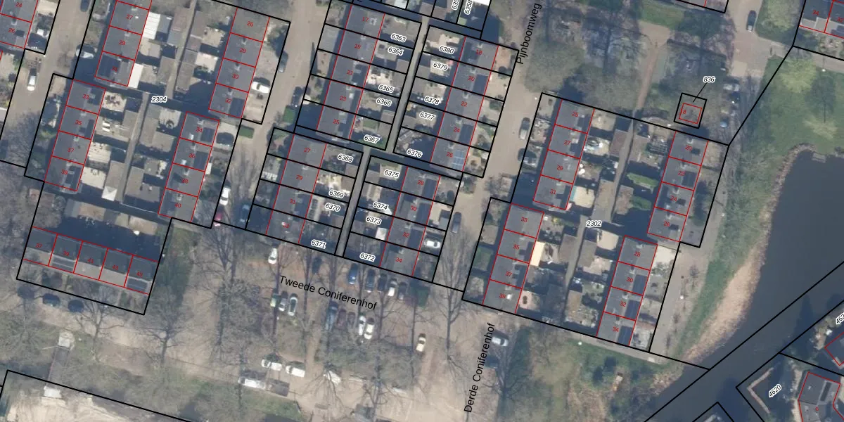 Pijnboomweg 30 is gelegen op kadastraal perceel GDA01M6374. Deze kadastrale aanduiding is uniek en wordt gebruikt door het Kadaster om eigendomsrechten en andere zakelijke rechten vast te leggen. Het perceel maakt onderdeel uit van de kadastrale gemeente Gouda.