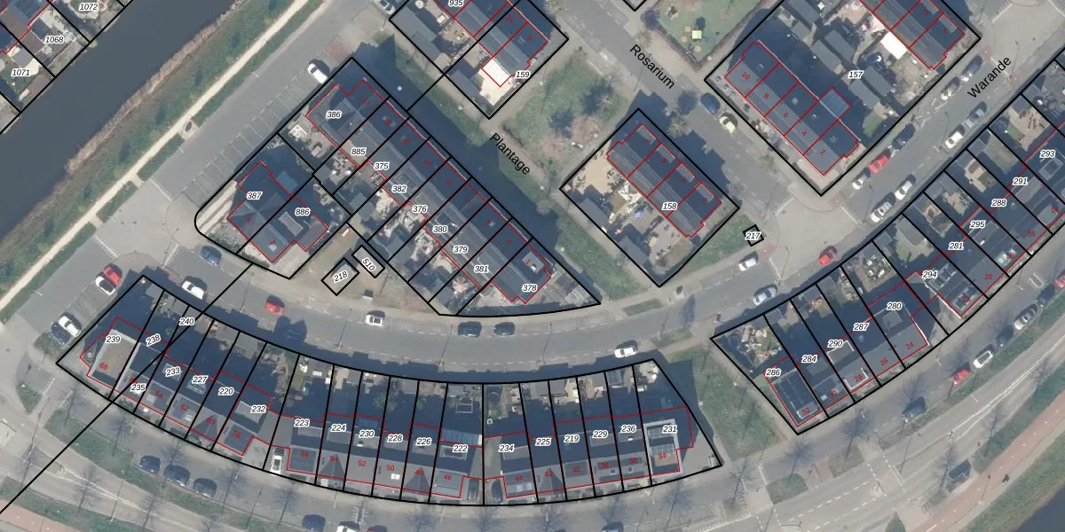 Gebruik de zoekbalk of klik op een perceel voor informatie over de adressen binnen dit perceel.