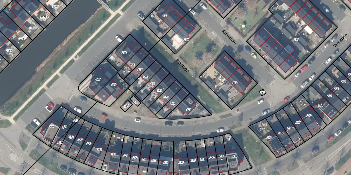 Het perceel waarop Plantage 5 staat heeft een oppervlakte van 123 m². Dit is een middelgroot perceel. De perceeloppervlakte wordt geregistreerd door het Kadaster. Gedetailleerde informatie over de maten van dit perceel kunt u vinden in het rapport Kadastrale kaart met maatvoering van Plantage 5.