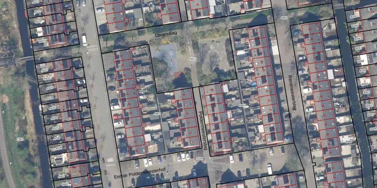 Poldermeesterslag 23 is gelegen op kadastraal perceel GDA01K4961. Deze kadastrale aanduiding is uniek en wordt gebruikt door het Kadaster om eigendomsrechten en andere zakelijke rechten vast te leggen. Het perceel maakt onderdeel uit van de kadastrale gemeente Gouda.