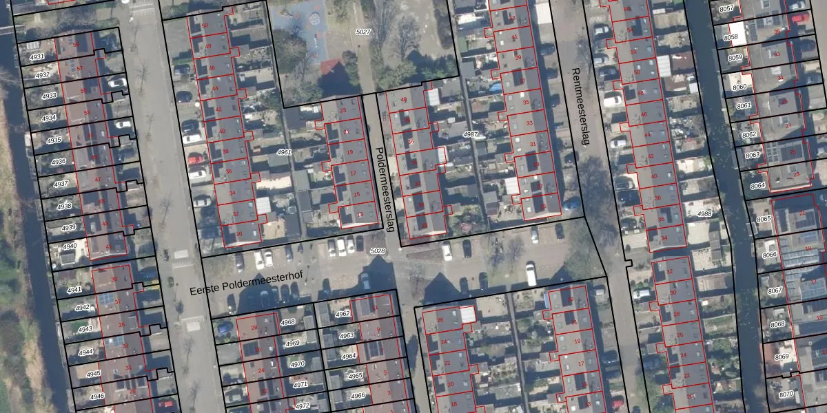Poldermeesterslag 30 is gelegen op kadastraal perceel GDA01K4987. Deze kadastrale aanduiding is uniek en wordt gebruikt door het Kadaster om eigendomsrechten en andere zakelijke rechten vast te leggen. Het perceel maakt onderdeel uit van de kadastrale gemeente Gouda.