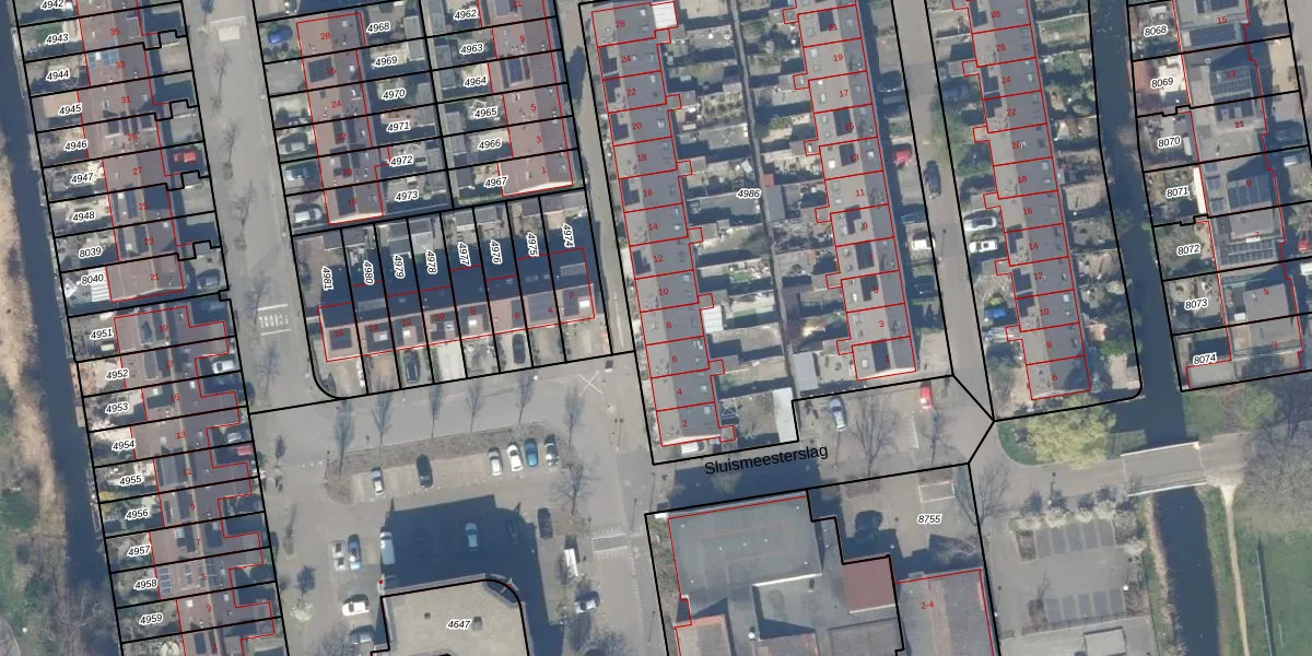 Poldermeesterslag 8 is gelegen op kadastraal perceel GDA01K4986. Deze kadastrale aanduiding is uniek en wordt gebruikt door het Kadaster om eigendomsrechten en andere zakelijke rechten vast te leggen. Het perceel maakt onderdeel uit van de kadastrale gemeente Gouda.