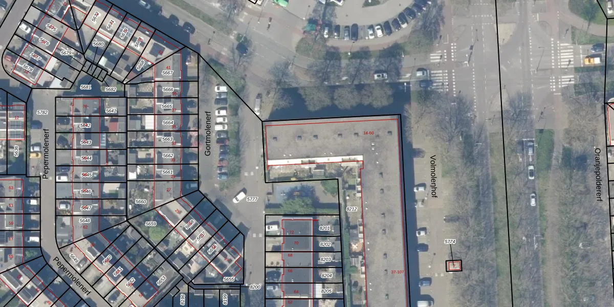 Het adres is gelegen op perceel 8212 in de sectie K en de kadastrale gemeente Gouda. De kadastrale aanduiding is aldus GDA01-K-8212. De gemiddelde perceeloppervlakte in de kadastrale gemeente Gouda is 678,78 m². Dit perceel is met zijn 2427 m² dus groter dan gemiddeld. De grootste perceeloppervlakte in de kadastrale gemeente is 24,2 ha. De kleinste oppervlakte bedraagt 0 m². Op het perceel liggen in totaal 60 adressen. In de Basisregistratie Kadaster (BRK) werden de grenzen van het perceel geregistreerd op 27-01-2000.